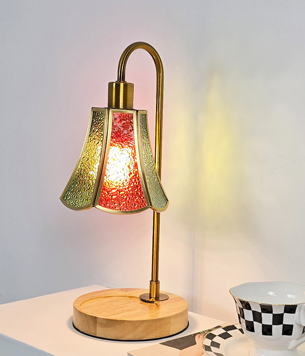 E14베이스 트랜디한 골드 & 우드 스테인드글라스